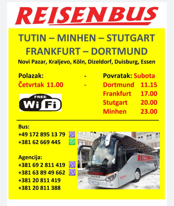 “Nova linija ide iz Tutina, svakog četvrtka u 11 časova, preko Minhena, Štutgarta, Frankfurta do Dormunda koji je krajnja destinacija. Povratak naših autobusa je subotom, u 11:15 časova iz Dortmunda. Za putnike iz Crne Gore, koji namjeravaju da putuju prema Njemačkoj, obezbijeđen je prevoz. Potrebno je da kontaktiraju našu agenciju za dodatne informacije. Ključ našeg uspjeha je udobnost i sigurnost a ovome možemo dodati i odgovornost našeg osoblja prema putnicima jer su za našu firmu putnici na prvom mjestu. Na ovom nećemo stati, već očekujemo osvježenje voznog parka sa još jednim vozilom turističke klase”, saopštili su iz Reisenbus Montenegra za portal radija.