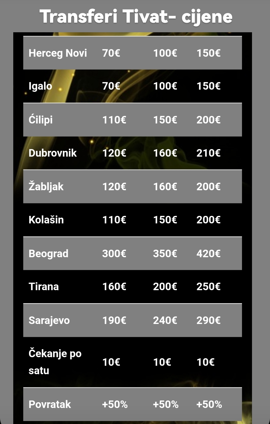 Uz najpovoljnije izdavanje vozila, dodatne usluge koje Vam stoje na raspolaganju su: vozač, 4G Internet Wi-Fi router, GPS navigacija, zeleni karton, sjedište za bebe i osiguranje.