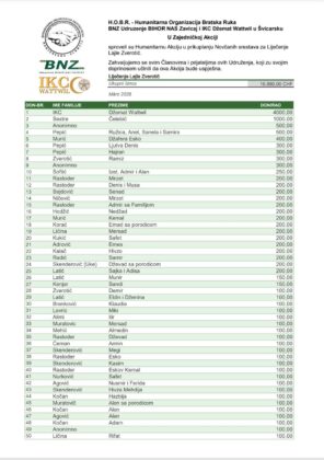 Zajedničkim radom humanitarne organizacije Bratska ruka iz Švajcarske, BNZ Udruženje Bihor – naš zavičaj i IKC Džemat Wattwil, uspješno je sprovedena humanitarna akcija prikupljanja novčanih sredstava za liječenje Lajle Zverotić i Envera Hota.